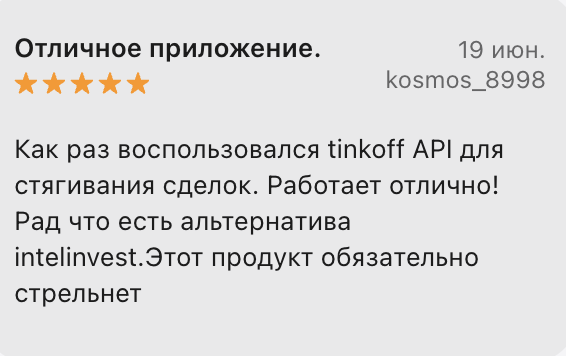 Несмотря на то, что такие приложения как трекер инвестиций в целом довольно универсальны и популярны, отзывов о Hadl в сети не так много. Однако то, что есть в открытом доступе дает понять, что людям приложение нравится. Они отмечают хороший и понятный интерфейс, а также хвалят API.
