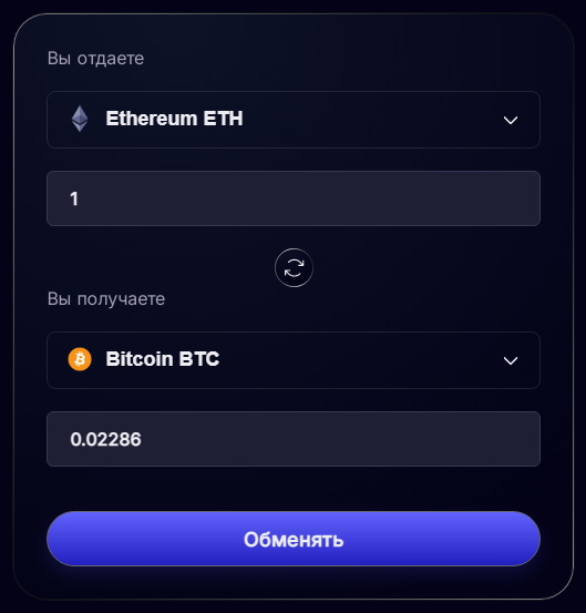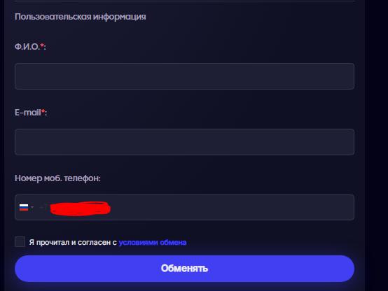После нажатия на кнопку Обменять пользователю остается перевести средства на указанный адрес или счет и получить другой актив на вписанные реквизиты.