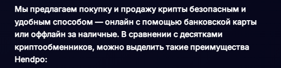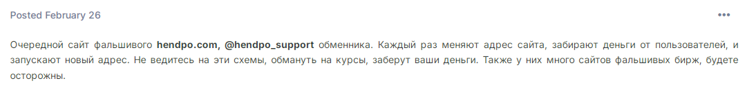 К сожалению, в интернете о Hendpo очень мало отзывов. В этом анонимном комментарии клиент предупреждает читателей о мошеннических действиях обменника. Владельцы меняют адреса, вымогают деньги, служба поддержки не отвечает.