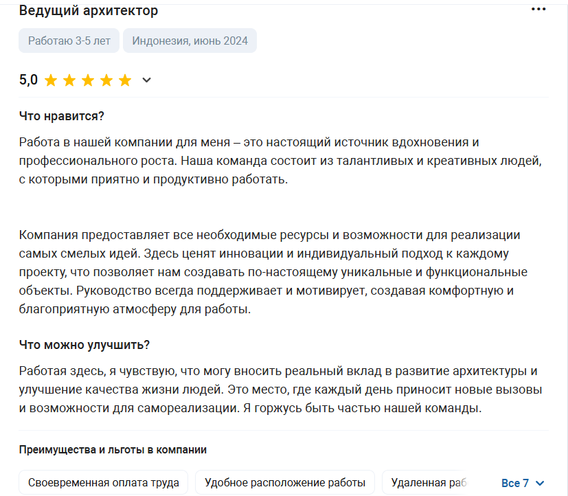 В сети есть отклики сотрудников, которые пишут, что коллектив хороший, работа комфортная, график гибкий, есть наставничество и возможность работать удаленно.
