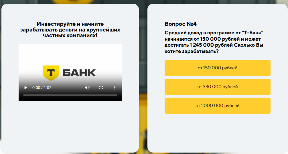 На сайте также есть рекламный ролик с презентацией площадки, вот только, похоже, он взят с реального сайта банка, т.к. здесь видны явные несоответствия с текстом. На моменте с озвучивание суммы здесь говорят о 120 тысячах, хотя, как мы ранее видели, обещаются гораздо большие числа.