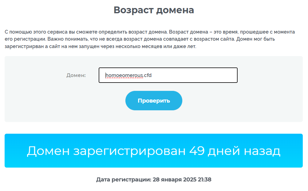 - сайт был зарегистрирован менее двух месяцев назад;