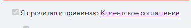 Перед отправкой данных посетителю предлагают принять клиентское соглашение. Вот только если нажать по нему, то на текст самого соглашения не перенаправит: скорее всего, это бутафория и реального документа даже не существует.