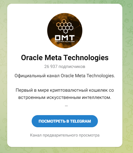 В довершении ко всему проект Honee Ai представлен во многих социальных сетях. Например, в Телеграмме, где официальный канал OMT Oracle Meta Technologies, доступный по ссылке officialOMT, имеет аудиторию, превысившую 26 тысяч человек. довольно скромный результат для крипто-продукта с миллионными регистрациями в сети.