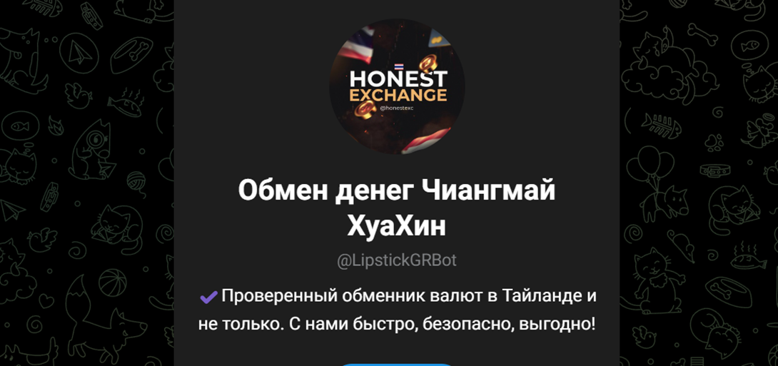Обменник «ОБМЕН Пхукет Паттайя Бангкок» работает только через Телеграм. Курс можно уточнить у менеджера в любом из каналов или ботов, к примеру в Honest currency. Как правило, владельцы указывают, что курс во многом зависит от суммы обмена. Чем больше денег будет менять подписчик, тем более выгодный курс ему предложит Honestexc bot.