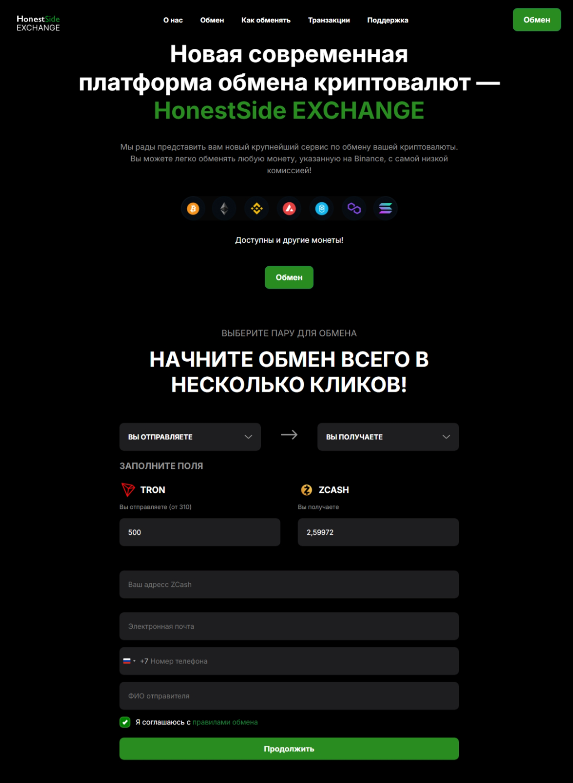 Правила обмена Honestside предусматривают, что после оформления транзакции следует ожидать ее разрешения.