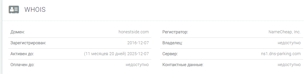 Однако, есть мнение, по отзывам о Honestside com от пользователей, что домен был перекуплен.