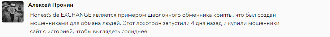 В социальных сетях и на специализированных форумах обмен мнениями ведется более интенсивно. Некоторые пользователи однозначно негативно относятся к Honestside Exchange просто оценивая его со стороны.
