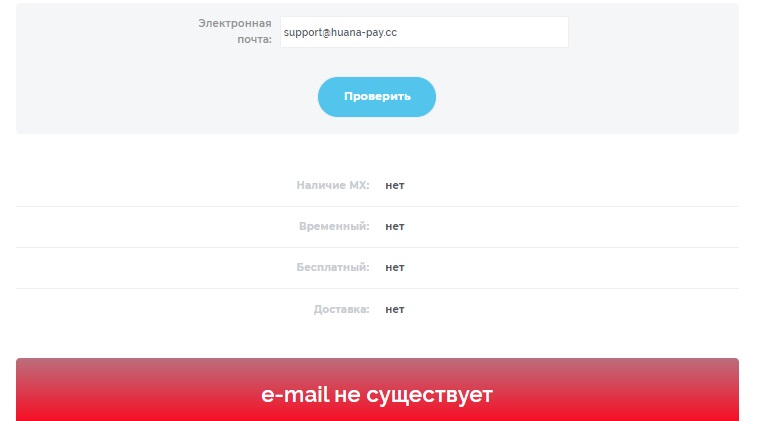 - Для связи с саппортом, который работает 24/7, указана электронная почта support @ huana pay cc, но она нерабочая.