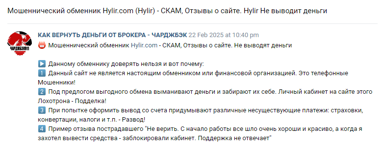 Отзывы пользователей об обменнике Hylir