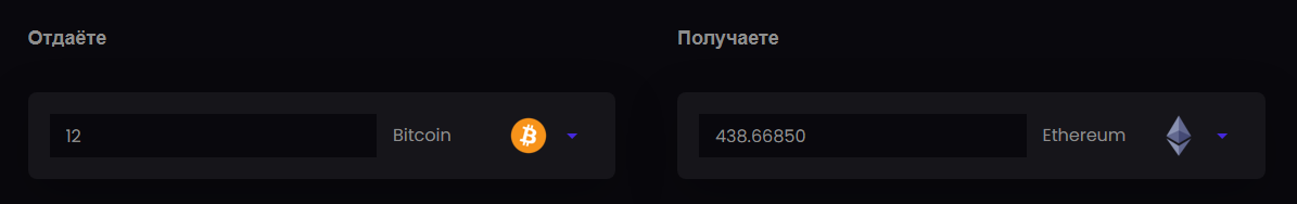 На главной странице есть калькулятор обмена. Пользователь вводит количество продаваемых монет, выбирает криплюватоюту, которую нужно купить.