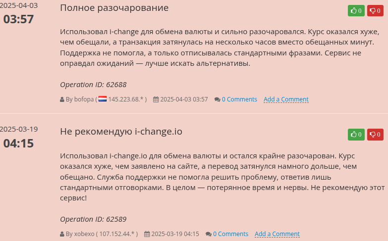 Пользователи оставляют в основном положительные отзывы об Ichange, утверждая про эффективность I change io. Однако, на агрегаторе OKchanger мы нашли и негативные фидбеки, где клиенты жалуются на плохой курс.