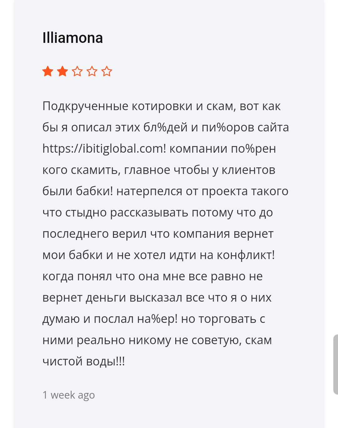 - В отзывах об «Ибитиглобал» много жалоб на бан профилей и бесполезную техподдержку. Значит, есть высокий риск потерять все вложенные деньги и не получить никакой помощи.