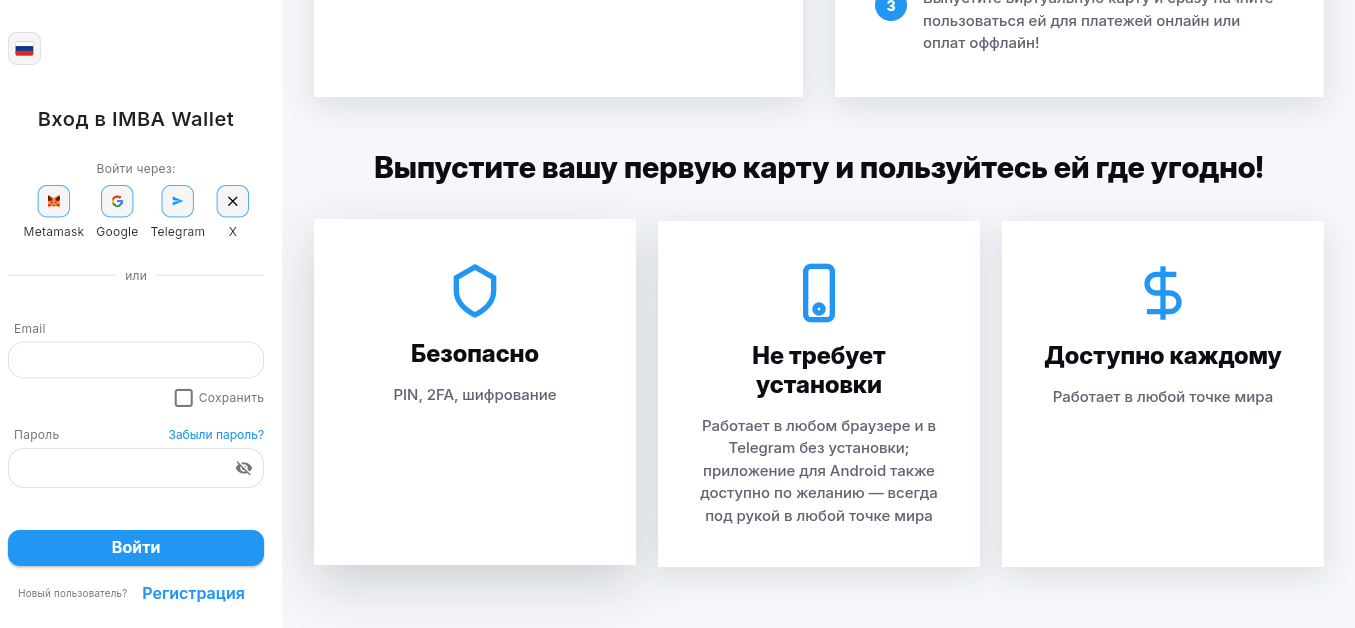 Для того, чтобы получить доступ ко всему функционалу платформе Imba Wallet, надо зарегистрировать учетную запись. Вместо регистрации можно еще подключить социальные сети, сократив время на создание аккаунта.