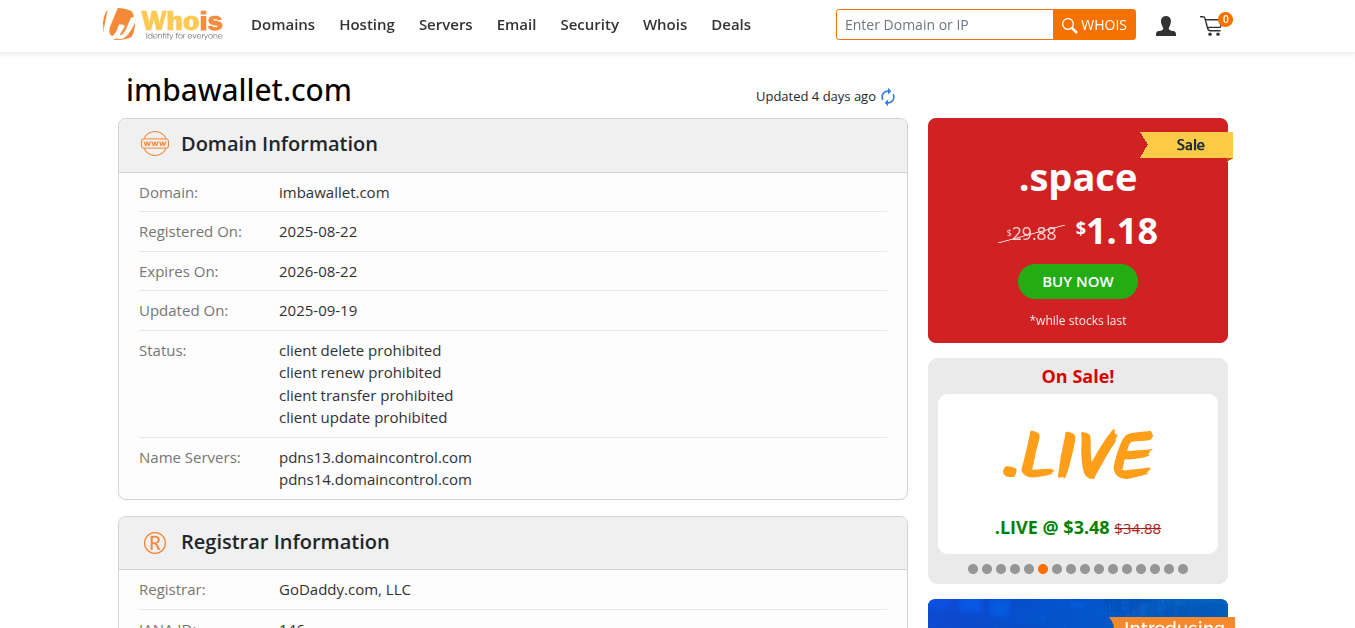 На главной странице нет никакой информации по лицензии или страховке пользователей. Следовательно, можно предполагать, что ничего такого у расчетной биржи нет. К тому же, отсутствует информация по команде разработчиков и дате старта платформы Imba Wallet. Но нюанс по сведениям запуска мы решили через WHOIS.