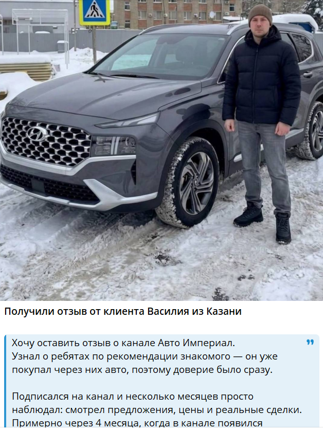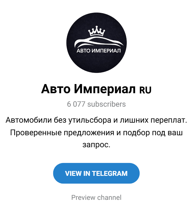 ТГ-канал «Авто Империал» не внушает доверия. К посредникам, которые предлагают покупку автомобилей из-за границы, стоит относиться с осторожностью. Часто они принимают предоплату и скрываются с деньгами клиентов.