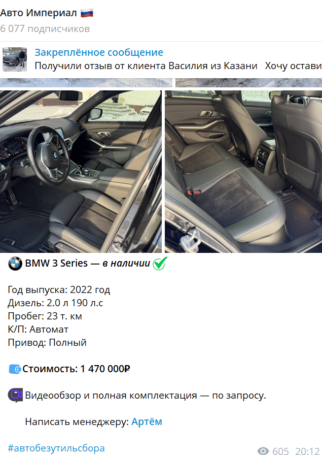 «Авто Империал»: честный обзор телеграм-канала и реальные отзывы о нем в сети