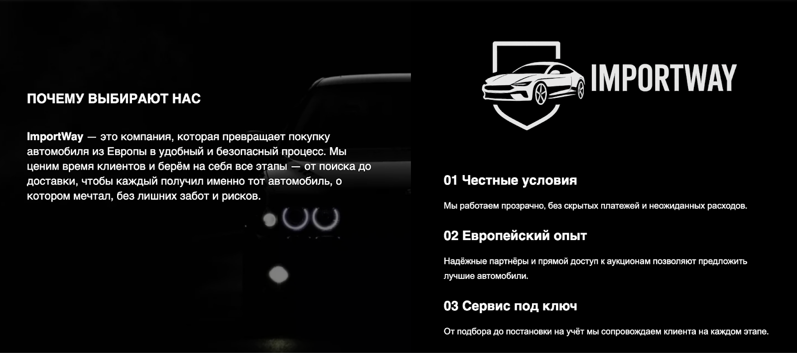 Import Way Logistic — проект, работающий в нише пригона автомобилей из Европы под заказ и с полным логистическим сопровождением. Проект ориентирован на подбор машин на европейских рынках, организацию доставки, оформление документов и передачу автомобиля клиенту уже в стране назначения. Взаимодействия выстроено через телеграм канал и сайт. Далее рассмотрим по какой схеме работает команда, честно ли организован процесс покупки и какие отзывы о телеграмм канале Import Way Logistic можно найти в сети.