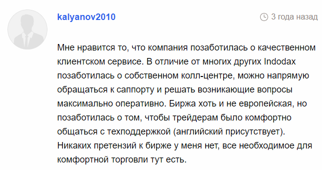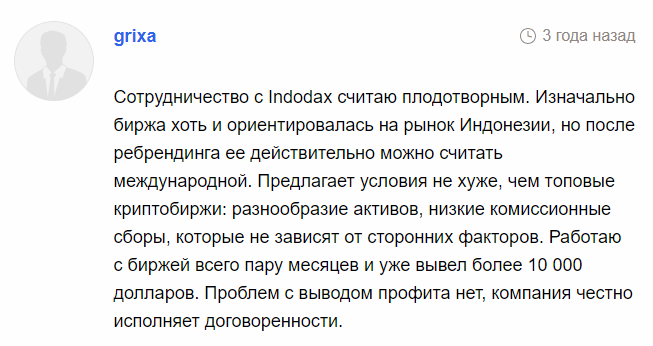На сторонних ресурсах представлены исключительно положительные отзывы об Indodax. Клиенты отмечают быстрое реагирование техподдержки, удобный терминал, низкие комиссии, отсутствие проблем с выводом денег.