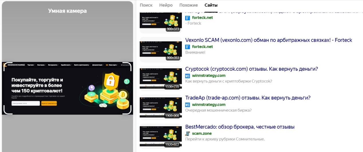 В интернете мы обнаружили еще несколько сайтов, абсолютно идентичных insdie exchange com. Изменены лишь названия. Все они фигурируют в обзорах лохотронов. Вероятно, они относятся к одним и тем же мошенникам. Аферисты часто меняют домены, чтобы скрываться от регуляторов и обходить блокировки.