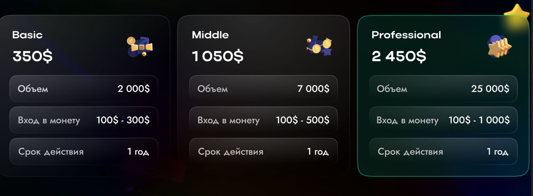 3. Профессиональный: $2450, объем до $25 тыс., вход $100-1000.