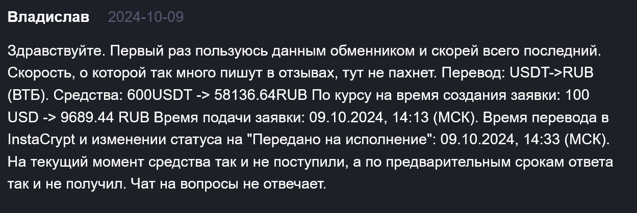 Мы изучили обменник InstaCrypt, который до сих пор занимается обменом и торгует цифровой валютой, нашли разные отзывы о нем.