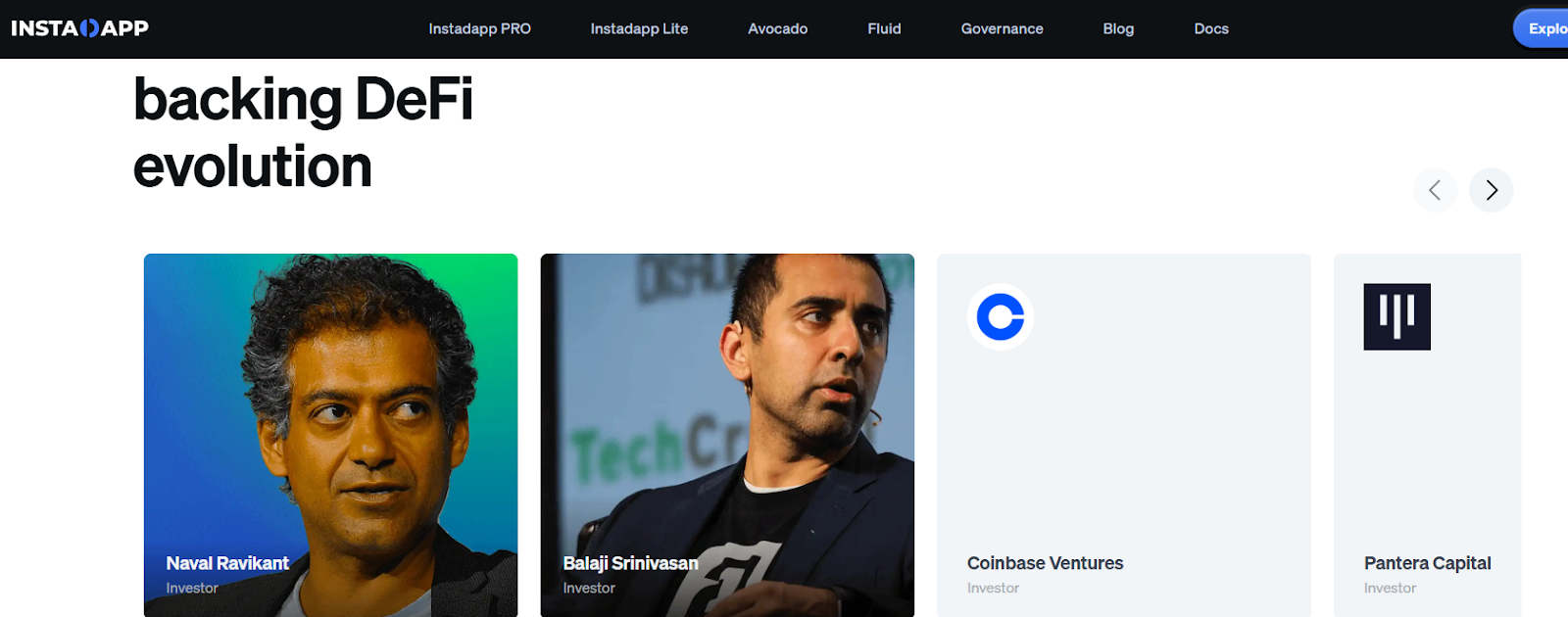 Instadapp — это DeFi-агрегатор и платформа управления портфелем, Появилась в 2018 году во время хакатона ETHIndia как инструмент, упрощающий сложные операции в DeFi. Разработали ее Sowmay Jain и Samyak Jain. Спустя время проект превратился в полноценную компанию. Фирма Instadapp Labs, по данным официального сайта, была зарегистрирована в 2019 году.