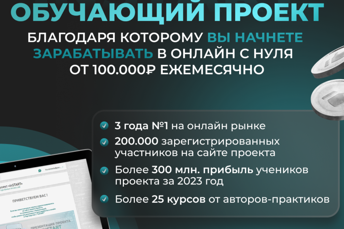 - пошаговые инструкции с нуля для получения от 100 тыс. рублей;