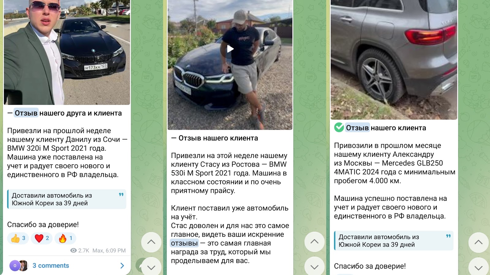 В тгк админы размещают фотографии, видео новых авто. К таким постам прикрепляется описание автомобилей, особенности продажи. Плюс к этому, для аудитории публикуются новости, касательно авторынка РФ.