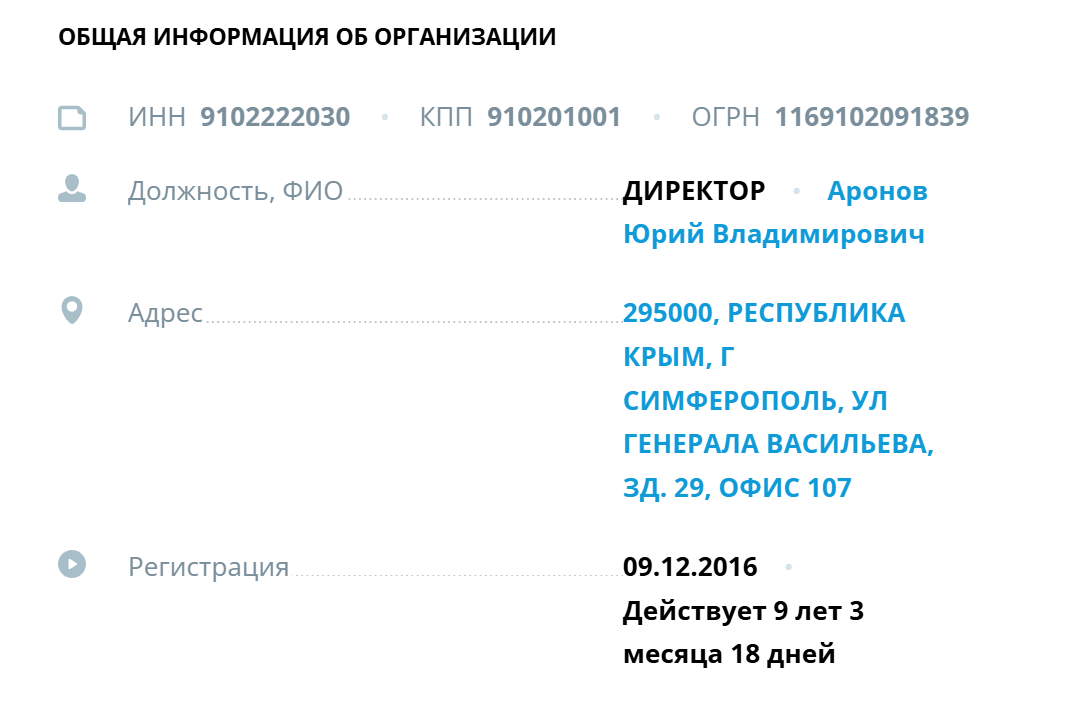 Главный офис компании находится в Крыму. Точнее — в городе Симферополь, ул. Васильева, 29. Сама компания ведет деятельность под названием ООО “Крепежные технологии”. Проверка показала реальное наличие такого юрлица. Последнее зарегистрировано более 9 лет назад.