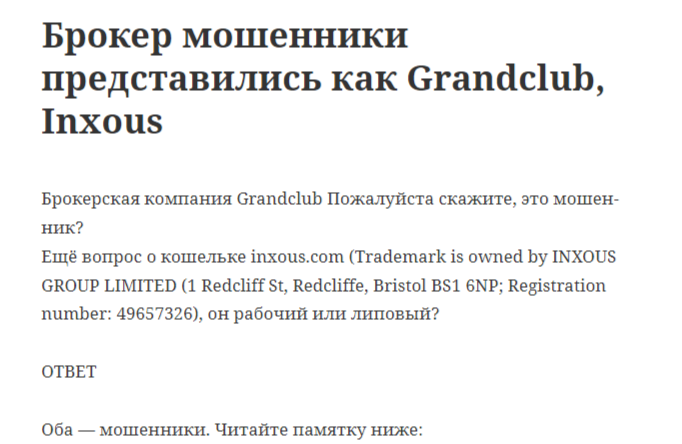 По итогам нашего расследования мы пришли к выводу, что с проектом Inxous Group Limited лучше не связываться, так как это сомнительный и нелицензированный источник. Есть подозрение, что это фальшивая фирма, и об этом свидетельствует множество признаков:
