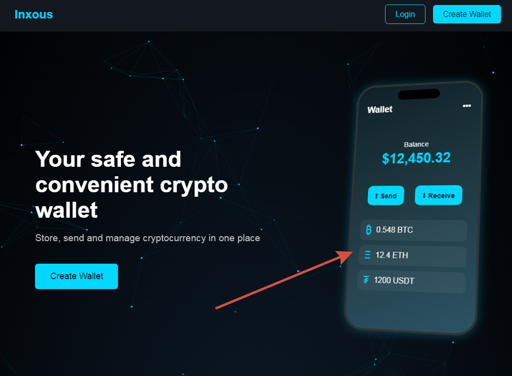 Официальный сайт организации Inxous Group Limited сразу бросается в глаза своей минималистичностью и не презентабельностью. Пользователей здесь встречает заголовок, что платформа является безопасным и удобным криптовалютным кошельком.
