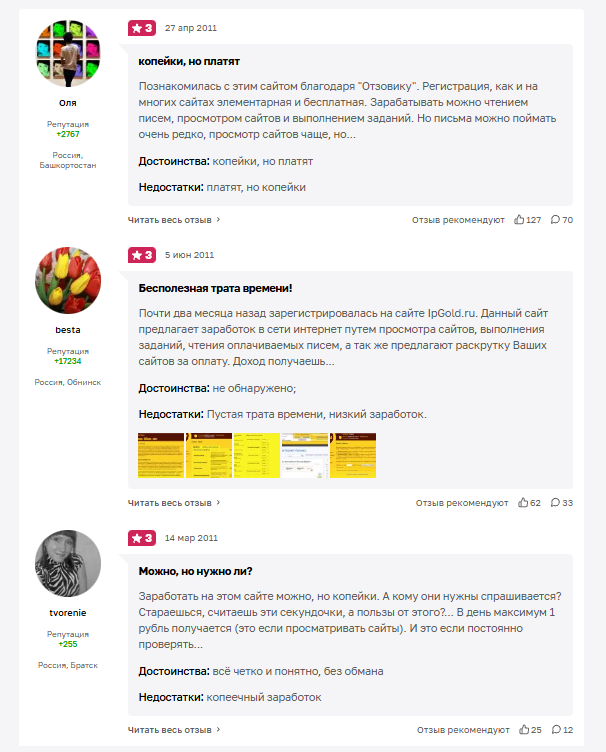 Среди исполнителей отзывы об IpGold ru не такие однозначные, поскольку не все готовы мириться с маленьким заработком и монотонной работой. В комментариях проект не обвиняют в скаме и практически каждый из пользователей отмечает, что деньги действительно платят.