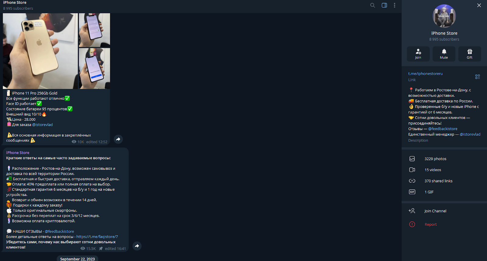 Телеграм-канал iPhone Store отзывы в сети получил сомнительные. Паблик обещает новые и б/у смартфоны Apple с доставкой по России. В этом обзоре мы разберем, как устроена работа площадки и чем она может заинтересовать пользователей. Проверим условия, изучим, какие риски могут возникнуть в результате сотрудничества, и выясним, стоит ли переводить деньги этому продавцу.