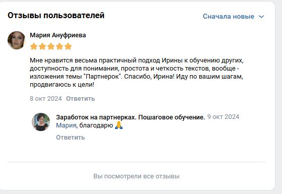 Также в официальной группе ВКонтакте Ирины Фрейд можно найти видео-уроки от 99 рублей. Партнерская программа отсутствует.