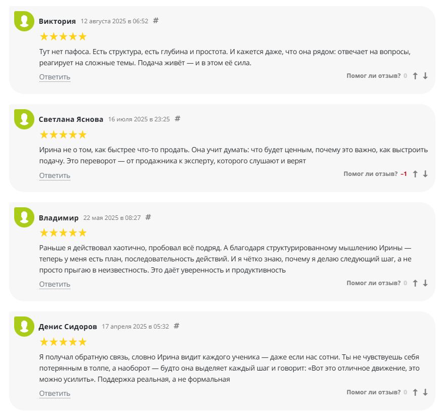 Отзывы об обучении у Ирины Фрейд в основном только позитивные. Многим понравилась подача материала за ее понятность и структурированность.