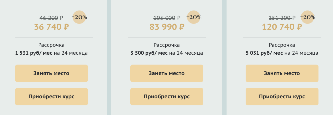 Тарифы на курсы Ирины Смирновой