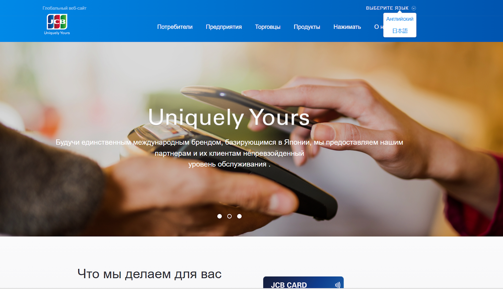 Есть официальный сайт Global jcb, у которого нет русскоязычного интерфейса, поддерживаются только английский и японский, но можно работать через браузерный переводчик. Домен существует с 2016 года, это подтверждает долгий стаж на рынке. Портал на русском ru jcb/ru сейчас не открывается.