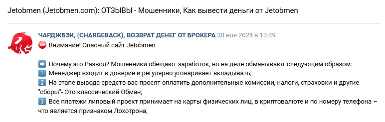 Jetobmen – онлайн-сервис по обмену криптовалюты. Клиентам обещают конвертацию монет представленных на бирже Binance с самыми низкими комиссиями. При этом в сети все чаще появляются разоблачения и отрицательные отзывы о Джетобмен Ком. Проведя анализ, мы выяснили причины, почему клиенты не доверяют платформе. С признаками мошенничества фейкового проекта можно ознакомиться в обзоре.