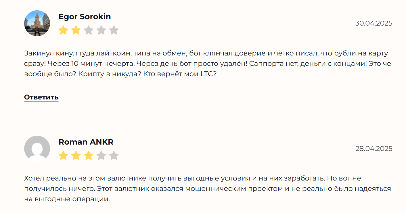 В интернете были найдены негативные отзывы о проекте. Пользователи сообщают, что Btc Monopoly использовался для обмана. Клиенты отправляли криптовалюту, но не получали обещанные деньги. Никаких подтвержденных случаев успешного обмена не найдено.