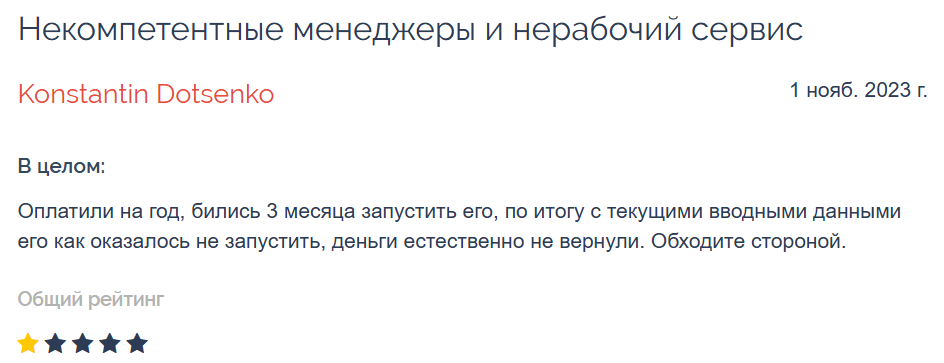 - Разработчики сервиса не дают бесплатного пробного периода для оценки функционала системы. Вместо этого сервис оплачивается сразу на год. Гарантий его совместимости с вашим программным обеспечением нет. Возврат денег не предусмотрен.