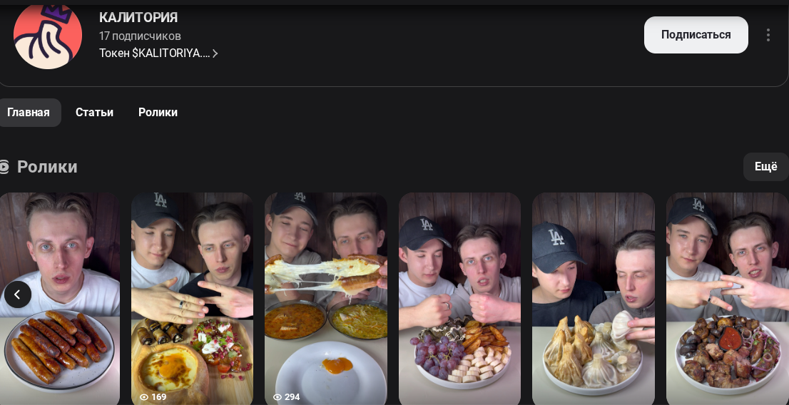 Для привлечения трафика с разных источников создатель ресторана ООО «Калитория» ведет канал на «Дзене». Там ситуация с пользователями аналогичная — подписок всего 17. В качестве основного контента админ выбрал видеоролики по манере мукбанга. На видео автор есть супы, кубдари, харчо, манты.