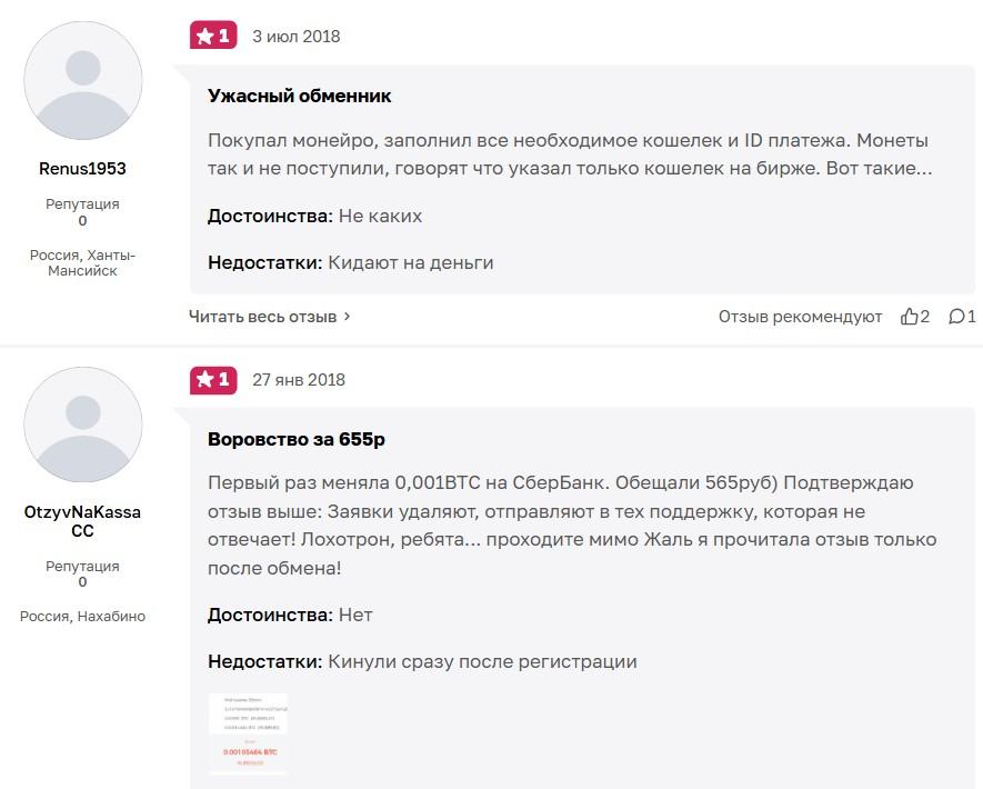 В негативных откликах клиенты утверждают, что их кинули на деньги.
