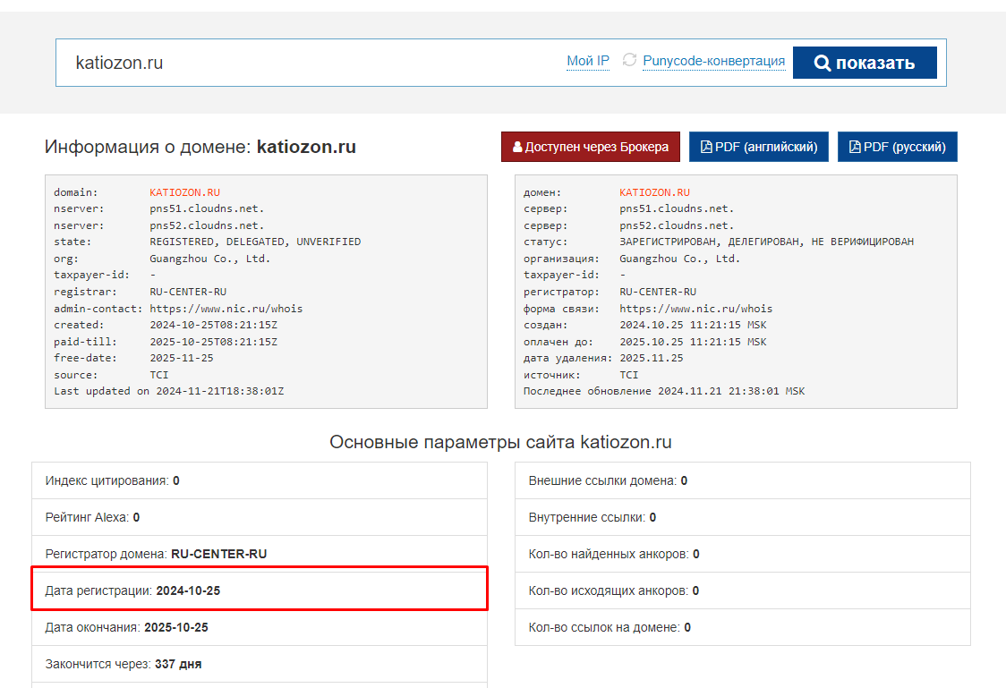 Домен проекта Катиозон ру был зарегистрирован в конце октября. Спустя всего лишь месяц, он стал заблокирован, из-за чего на данный момент новые пользователи не могут ознакомиться с условиями сотрудничества.
