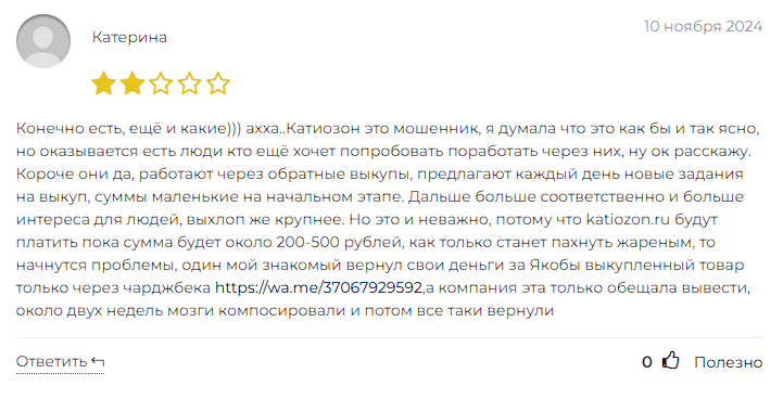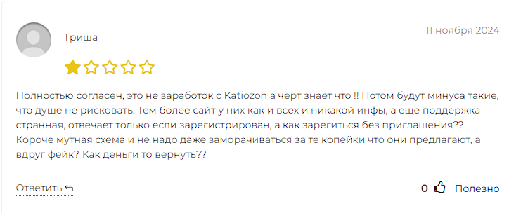 Обзор проекта Katiozon: отзывы клиентов, безопасно ли сотрудничать?