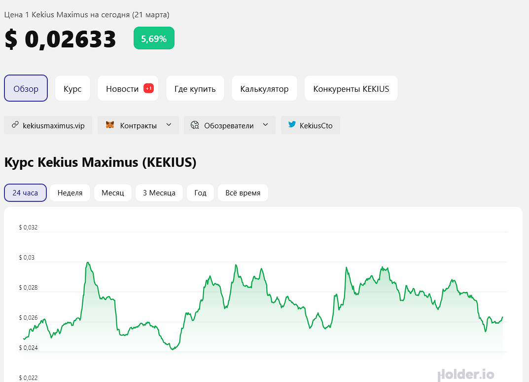 Разработчики выпустили 1 млрд монет. Сегодня они все распроданы. Общий объём сделок с токеном за 24 часа составляет 12 миллионов долларов. Но в марте 2025 крупные инвесторы распродали активы по причине падения стоимости монеты «Кекиус Максимус». Цена резко упала с 0,4 доллара за токен до 0,00069 доллара.Крипта создана на блокчейне Ethereum. Это плюс, так как у системы высокая пропускная способность. Благодаря этому, пользователи могут быстро проводить транзакции с минимальными комиссиями – в среднем, 0,1-1%. Купить её можно на нескольких биржах, например, gate.io, MEXC и т.д.