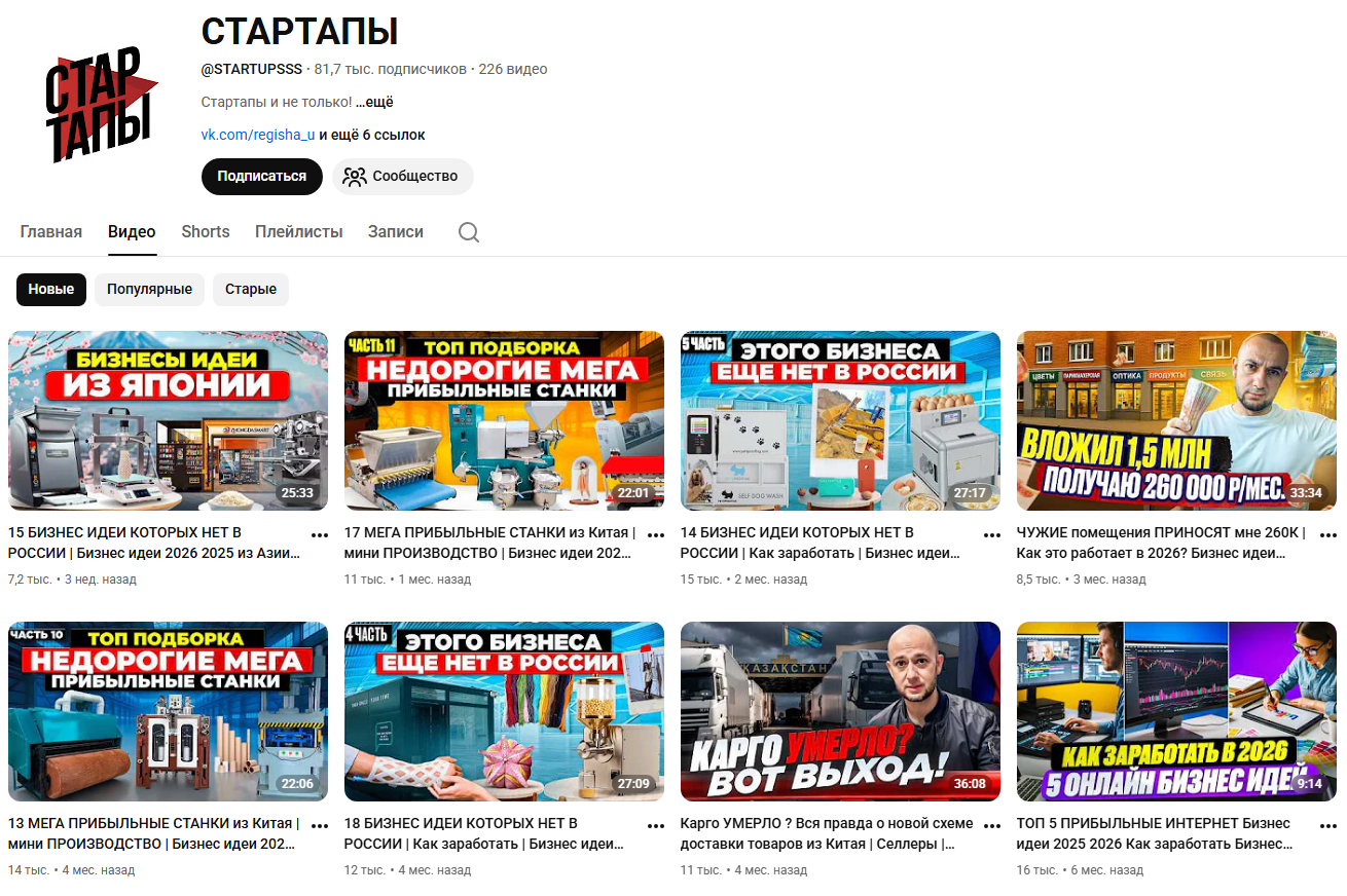 На Youtube-канале ситуация выглядит скромнее. На апрель 2026 года на блог подписались почти 82 тыс. человек. При этом видеоролики едва собирают 20 тыс. просмотров.