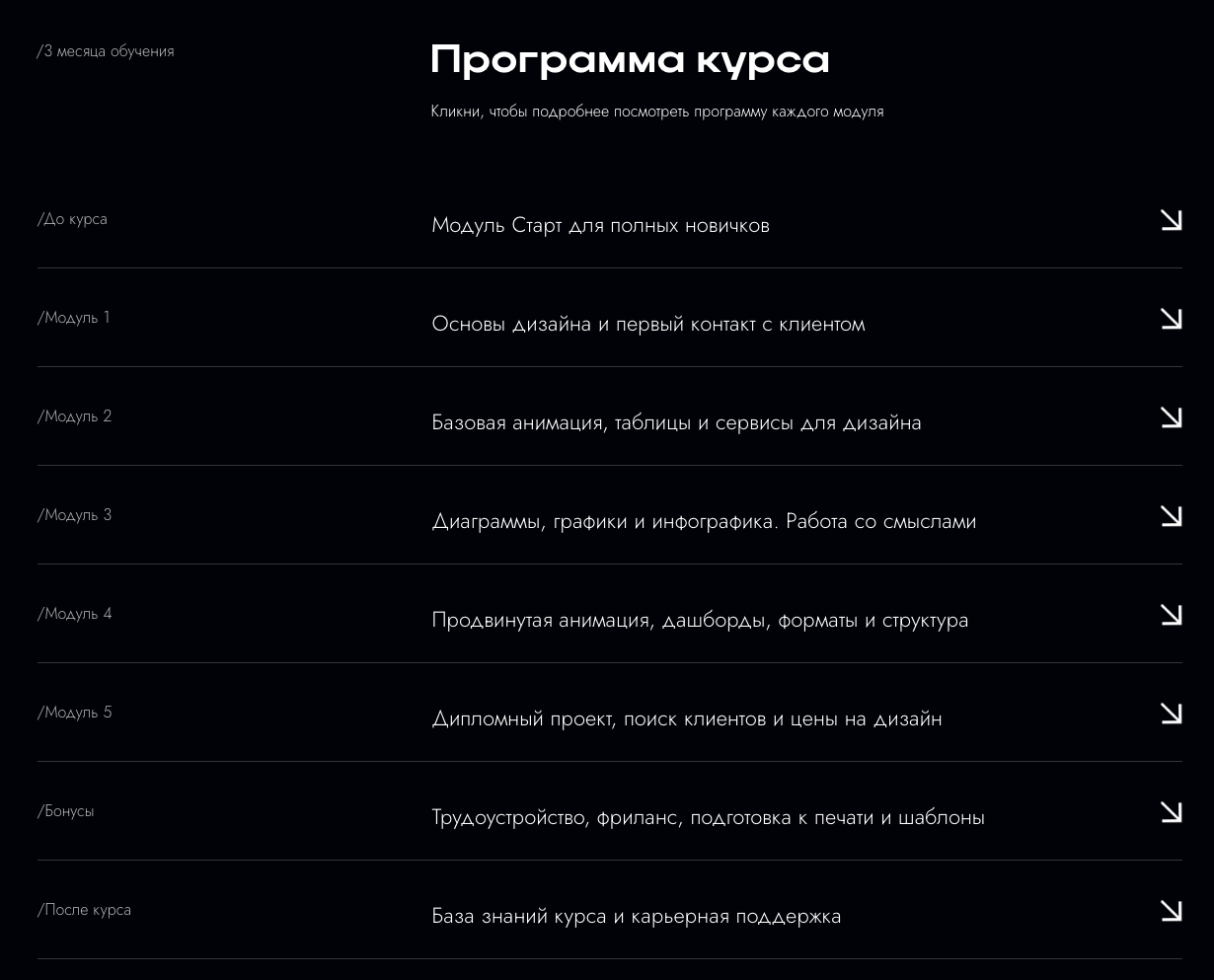 Программа обучения состоит из пяти модулей. В качестве бонусов Воронин обещает помощь с поиском заказов на фрилансе, а также трудоустройством в компании.