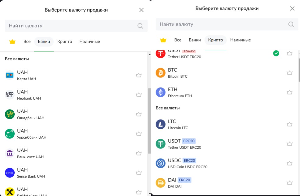 Доступна покупка крипты за фиат с карт банков Монобанк, Приватбанк, ПУМБ, Райффайзен и другие. Из криптовалют есть известные и устоявшиеся высоколиквидные активы, такие как BTC, ETH, SOL и недавно появившиеся мемкойны по типу TRUMP.