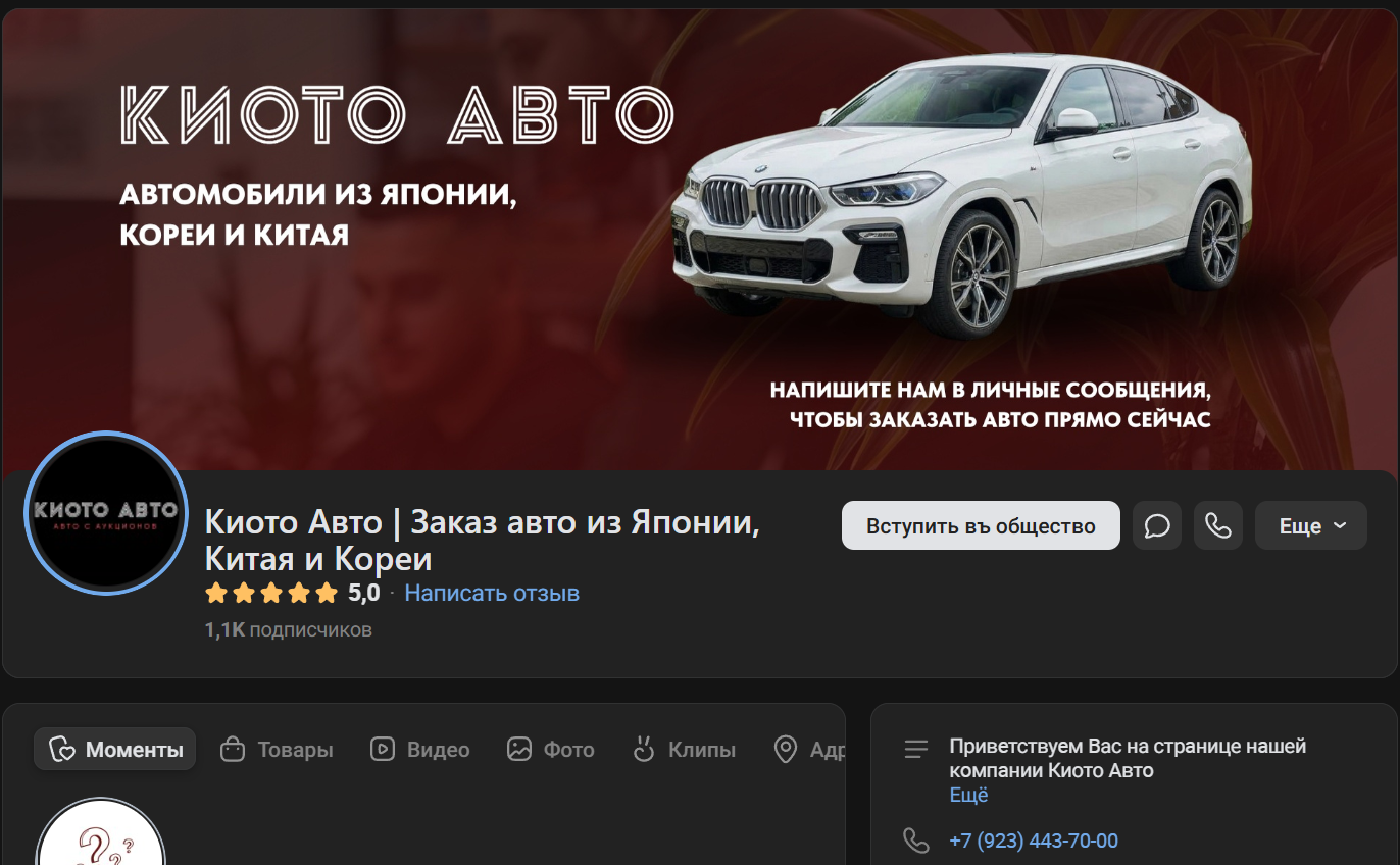 Компания работает уже несколько лет и помимо телеграм-канала предлагает посетить еще официальный сайт Kioto auto ru. Там можно оформить заявку на расчет стоимости транспортировки, выбрать интересующий автомобиль из предлагаемых вариантов, а также оформить подбор по параметрам. Представители компании якобы выкупают машины на аукционах, что позволяет сформировать доступную стоимость для покупателей. Доставка возможна в Томск и в прочие регионы страны.